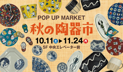 店内のPOP UP販売台にて波佐見焼、美濃焼、九谷焼などの陶器を期間限定で販売します。 毎日手に取りたくなるデザインで、使うたびに愛着が増します。