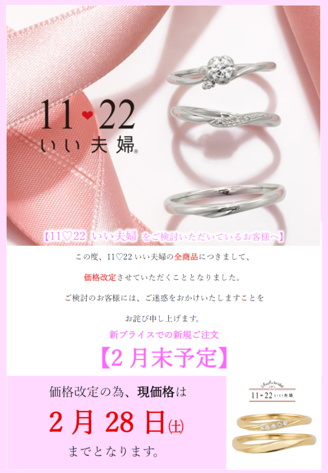 価格改定前!!〈~2月28日㈯まで〉11♥22 “いい夫婦” ブライダル💍✨ 安心の定額リング。 KIHARA HOUSHOKU (キハラホウショク) ファッショングッズ / 2F