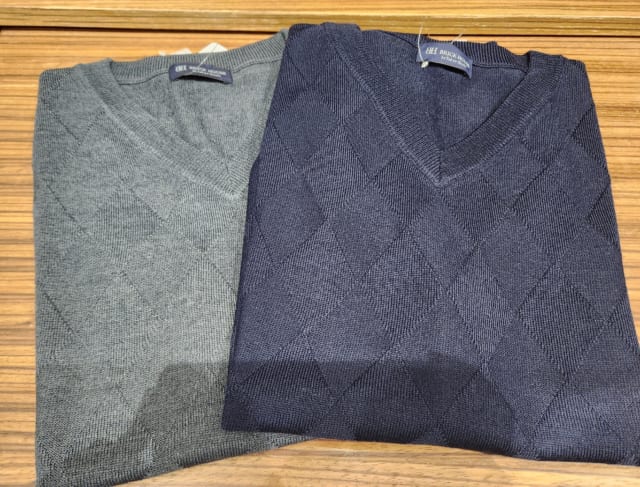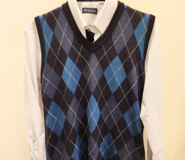 ビジネススタイルにも馴染みの良いダイヤ柄と アーガイル柄のVネックベスト。