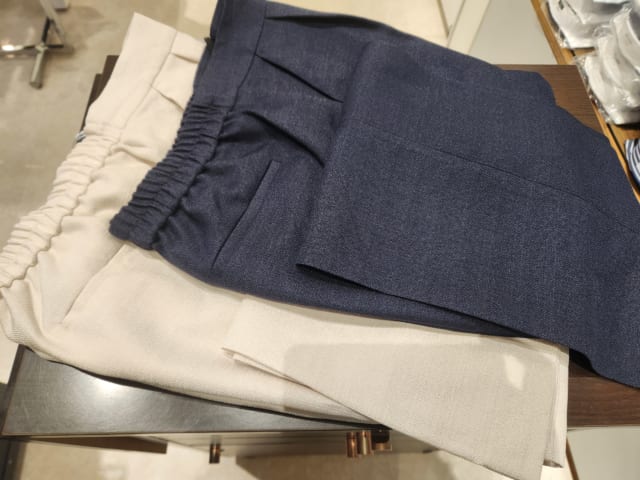 これからのセレモニーシーンに上品に着こなせる衿のないすっきり とした首元のノーカラージャケットとボトムのセットアップ✨
